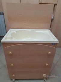 Mobile fasciatoio con vasca bagnetto. Con ruote per spostarlo comodamente datate di freni.