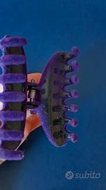 Molletta per capelli, con rivestimento esterno in simil velluto, colore viola. Nuova, mai usata.