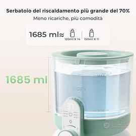 Serbatoio Grande 1685 ML (57 OZ): fino a 14 biberon da 120ml o 11 da 150ml senza ricariche frequenti, per una routine più efficiente.