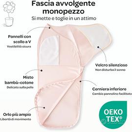 Riduce il Riflesso di Moro e Favorisce il Sonno Tranquillo:Questo swaddle neonato in tessuto elasticizzato di bambù-viscosa si adatta al corpo del bambino, mantenendo un avvolgimento sicuro e riducendo il riflesso di inizio per favorire un sonno sereno.