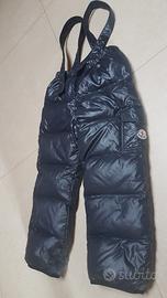 Pantaloni imbottiti marca Moncler originale tg.5 anni colore blu scuro. Imbottitura in vera piuma d'oca, bretelle regolabili, lunghezza pantalone 69 cm circa. Usati 1-2 volte, ottimo stato. # montagna sci piumino invernale neve freddo inverno sciare kids bambini