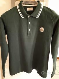 Polo Moncler originale, bambino tg. 11 anni - h. 146 cm., manica lunga, colore verde, in perfette condizioni