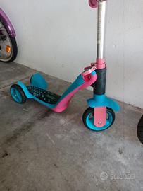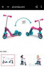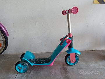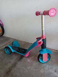 veicolo 2 in 1: bici senza pedali e monopattino. Per bambini dai 18 mesi ai 3 anni. Facile da trasformare senza attrezzi, forme ergonomiche, ruote silenziose, struttura in metallo, altezza del manubrio regolabile (3 diverse posizioni: 52, 57 e 62 cm). Divertimento assicurato, per imparare a stare in equilibrio.