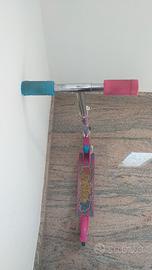 Vendo monopattino per bambina dei personaggi MECONTROTE, condizioni pari al nuovo, manubrio regolabile in altezza, richiudibile con perno di sicurezza, lunghezza tavola circa 35 cm, altezza media manubrio 80cm.