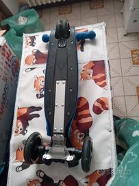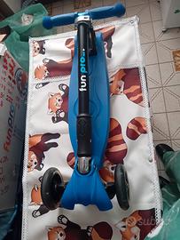 Monopattino per bambini Fun Pro Two, ideale per divertirsi all'aria aperta. - Consigliato dai 5 anni, peso max 80kg. - Colore blu vivace. - Design a 4 ruote per maggiore stabilità: 2 davanti e una doppia dietro. - Ruote a dinamo che si illuminano in movimento. - Manubrio regolabile da 56 a 86cm. - Base rinforzata in metallo 63x27,5cm. - Freno posteriore attrito. - Ottime condizioni, usato pochissimo.