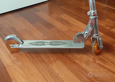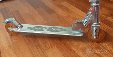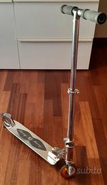 Monopattino bambino in acciaio max 50 kg. con freno a pedale, lunghezza pedana cm. 50 altezza cm. 90 regolabile, ruote in gomma cm. 10, ottime condizioni