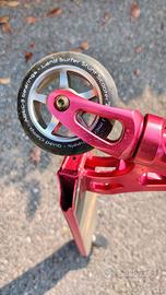 Monopattino freestyle per l'uso in skatepark o per strada. Progettato per acrobazie, salti e trick grazie alla struttura resistente. Manubrio con rotazione a 360°, base leggera ma robusta, e ruote ad alte prestazioni. Resistente fino a circa 100 kg di peso. Regalo caschetto Decathlon regolabile. Condizioni molto buone. Ritiro a Pietra Ligure. Fabio 329.2139620