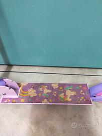 monopattino unicorni in metallo, 2 ruote , richiudibile, con freno posteriore, regolabile in altezza fino a 80 cm