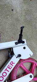 Monopattino bianco adatto a bambini di 8 anni con cavalletto.