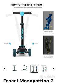 Monopattino Fascol 3 ruote per bambino pieghevole. Colore blu,