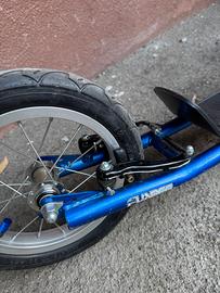 Vendo per scarso utilizzo monopattino FunBee con ruote da 12 pollici con camera d'aria e doppio freno a manubrio. In pratica un incrocio tra una bicicletta e un monopattino (una monocicletta!) E' in perfetto stato, solo leggeri segni di utilizzo, adatto per ragazzi/e da circa 7 anni. Disponibile per qualsiasi prova, solo ritiro a mano a Basiglio, eventualmente in città a Milano da concordare. Acquistato alcuni anni fa a 128€.