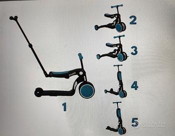 Draisienne evolutiva 5 in 1 triciclo bambino evolutivo e monopattino con barra di spinta