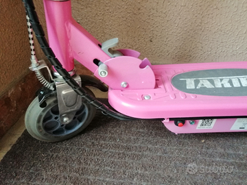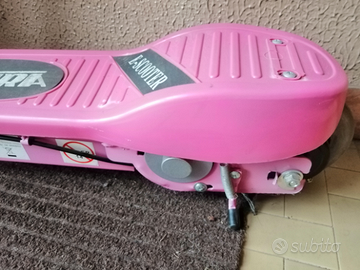 Electronic Star V6 è uno scooter/monopattino elettrico dalla forma slanciata, che vi accompagnerà in un viaggio entusiasmante tra divertimento e comfort. L'edizione speciale di colore rosa del V6 si avvale delle caratteristiche tecniche della versione classica, uno speciale motore elettrico ecologico da 100W, che consente al monopattino di raggiungere fino a 16km/h di velocità con autonomia fino a 16km di distanza. Un'esperienza di guida maneggevole e confortevole, freni dosabili e ruote sportive garantiscono alla freccia rosa un tragitto sicuro, riuscendo ad entusiasmare un'utenza che va dal ciclista al normale pedone. Una volta raggiunta la destinazione, lo scooter può essere comodamente ripiegato per venire riposto, ad esempio, nel bagagliaio dell'automobile. La batteria dello scooter elettrico si ricarica in sole 6-8 ore direttamente dalla presa di corrente.