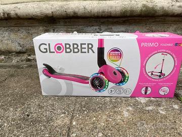 Monopattino rosa neon a tre ruote per bambini dai 3 in su, con freno posteriore.