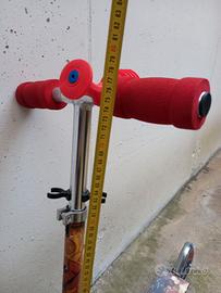 Classico monopattino in alluminio, con manopole morbide, completamente richiudibile e facilmente trasportabile. Pedana antiscivolo. con omaggio simpatico clacson