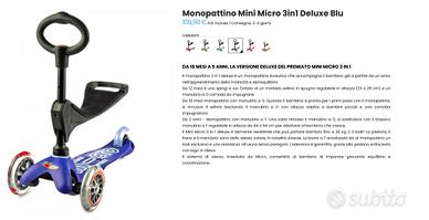 Il Mini Micro 3 in 1 deluxe è talmente resistente che può portare bambini fino a 35 kg (in confezione originale e manuale con accessori).