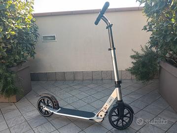 Monopattino pieghevole per bambini ed adulti fino a 100 kg, regolabile e leggero, costruzione solida, ruote da 20cm, ammortizzatori e freno posteriore.