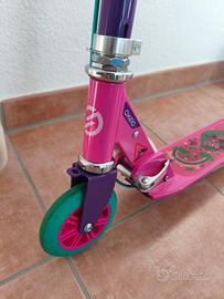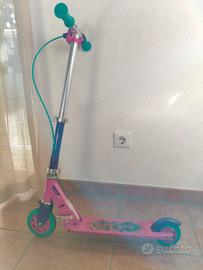 Monopattino Oxelo, ripiegabile, manubrio allungabile, freno posteriore con leva nel manubrio e sulla ruota posteriore.