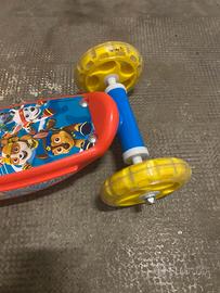 Vendo come nuovo monopattino Paw patrol con sacca contenitiva e manubrio regolabile in altezza. Dalle foto si nota il poco utilizzo del poggia piedi e delle ruote! Affare! Ritiro a mano su Torino! Non spedisco