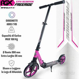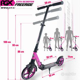 🚀 Monopattino Pieghevole in Alluminio – Ruote Grandi 200mm, Ammortizzato 🛴✨ 💯 NUOVO, MAI USATO! (Scatola originale leggermente ammaccata o sostituita) Il Monopattino FREERIDE RGX Urban Scooter è la scelta perfetta per ragazzi e adulti che vogliono un mezzo pratico, resistente e comodo per spostamenti urbani o momenti di svago. Grazie alle sue ruote da 200mm e al sistema ammortizzato, garantisce una guida fluida e silenziosa su qualsiasi superficie. ✅ TELAIO IN ALLUMINIO PIEGHEVOLE – Robusto ma leggero, con cinghia a tracolla per un facile trasporto. ✅ RUOTE GRANDI DA 200mm IN PU 88A – Perfette per una guida fluida, maggiore stabilità e comfort. ✅ CUSCINETTI ABEC-7 RS – Scorrevolezza superiore per un’esperienza veloce e silenziosa. ✅ AMMORTIZZATORE ANTERIORE – Per assorbire le vibrazioni e garantire massimo comfort. ✅ MANUBRIO REGOLABILE – 3 altezze disponibili: 86 - 93 - 100 cm. ✅ PEDANA EXTRA-LARGE – 53 x 11 cm, stabile e spaziosa per entrambi i piedi. ✅ PORTATA FINO A 100 KG – Adatto dagli 8 anni in su, perfetto anche per adulti. ✅ FRENO POSTERIORE A PEDALE – Per maggiore sicurezza e controllo durante la guida. 📏 Dati tecnici: 🔹 Telaio: Alluminio e acciaio ultra resistente 🔹 Ruote: 200mm in PU 88A (mescola morbida per un grip migliore) 🔹 Cuscinetti: ABEC-7 RS per massima fluidità 🔹 Peso: Leggero e pratico da trasportare 🛴 Perfetto per la città, il tempo libero e gli spostamenti rapidi! 🏙️✨ 📦 Spedizione disponibile! Contattami per info! 🚀💬