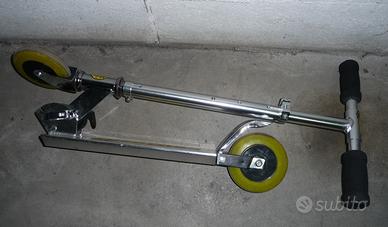 Monopattino Reptor come da foto totalmente in alluminio pieghevole e regolabile in 3 posizioni di altezza. Come da istruzioni adatto ad un bambino da 3 anni e fino a 50 kg di peso. Usato pochissimo vendo per cambio mezzo. Qualsiasi prova a SV.