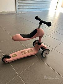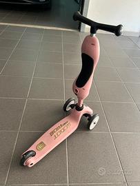 Vendo monopattino Scott and Ride trasformabile in triciclo, colore rosa opaco, usato poche volte, prezzo 80 euro.