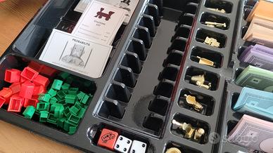 Gioco Monopoly edizione affari d'oro in tiratura limitata, con segnalini dorati in metallo.