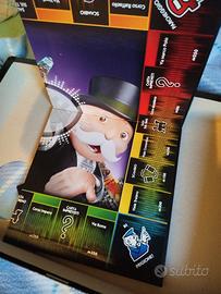 È la versione di Monopoly con il cappello parlante che fa a voce le operazioni bancarie. La scatola ha uno spigolo rotto ma scotchato, tutti i componenti del gioco ci sono e funzionano (pile incluse).
