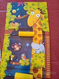 Gioco in scatola con metro da appendere al muro per misurare la crescita, giochi di logica e quaderno per imparare su di sé ( la mia famiglia, il mio segno zodiacale ecc). la scatola è un po' schiacciata perché stava in fondo all'armadio, ma il gioco è immacolato in quanto mai utilizzato ( regalato fuori età)