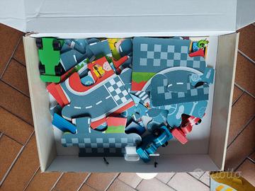 pista macchinine in legno pista da costruire -puzzle Con le macchinine in legno pista tridimensionale istruzioni incluse usata 3-4 volte