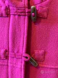 Bellissimo montgomery fucsia con doppia chiusura, zip e alamari. Il cappuccio non è staccabile. Marca Chicco, veste 4 anni 104 cm. Arriva sopra il ginocchio. In ottimo stato.