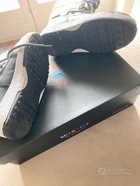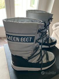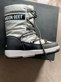 Stivale doposcì bambino/a da neve color argento/nero. Taglia 30 .Questo modello WE Sport WP è realizzato in resistente tessuto tecnico e inserti in nylon, allacciato con lacci regolabili in tessuto su occhielli metallici e logo a contrasto su gambale. Intersuola in gomma e suola antigrip. Il compagno ideale per una vacanza ad alta quota.
