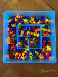 L’affascinante mosaico per bambini M7E con stencil (animali), composto da 240 pezzi colorati, è pensato per i più piccoli. Questo interessante set di gioco permette al bambino di creare otto diverse immagini con scene di animali. Il gioco è realizzato con materiali ipoallergenici e non tossici, assolutamente sicuri per la delicata salute dei bambini. I pezzi grandi, dalla forma ergonomica, sono facili da afferrare con le piccole mani e possono essere tenuti e ruotati comodamente per comporre le immagini. Durante l’assemblaggio dei pannelli a mosaico, il bambino svilupperà la motricità fine, il pensiero logico, l’attenzione e la perseveranza. Questo gioco-mosaico, oltre a essere estremamente divertente, aiuta anche a sviluppare il gusto artistico, la percezione visiva e dei colori. Utilizzando questo set, potrete inoltre insegnare al bambino i nomi degli animali, ampliando così le sue conoscenze e il vocabolario. Caratteristiche: Fascia d’età: dai 3 anni