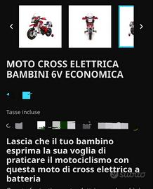 Motocross elettrica bambino, portata fino a Kg 25 dotata di carica batteria, presenta qualche graffio
