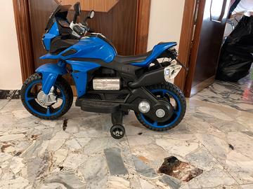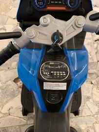 Moto da bambino a batteria con pedale per la marcia, varie suonerie, canzoni ed effetti, possibilità di collegare microfono e pennina per leggere file musicali .