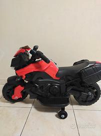 Vendo moto elettrica per bimbi 6v di potenza , quella in foto è di mio figlio ma ne ho un'altra identica ancora nuova imballata, manca soltanto il parafango nero anteriore, ma i copri forcelle rosse si possono mettere lo stesso e si nota poco la sua mancanza. La moto che vendo è nuova i pezzi da montare sono ancora nelle plastiche.