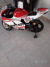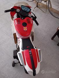 vendo bellissima moto elettrica con 2 batterie. la moto funziona benissimo ETA dai 5 anni fino a.8.anni la moto a 2 velocità.la 1 va con le rotelle la 2 velocità .va senza.ruotelle..l'unica cosa è che a la ruta dietro .un po leggermente fuori dal cerchione.ma va lostesso .io lo comprata euro 350.la vendo a 180..