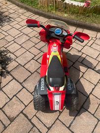 Vendo moto elettrica Peg-Perego Desmosedici Rider Valentino Rossi adatto per bambini dai due anni. Schiacciando il pedale la moto avanza e frena quando viene rilasciato. Si ricarica facilmete alzando il sedile. Normali segni di usura ma la moto funziona molto bene. Ritiro a mano