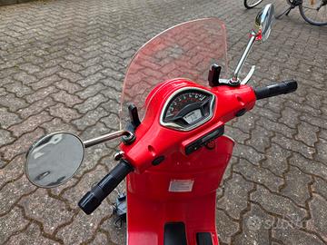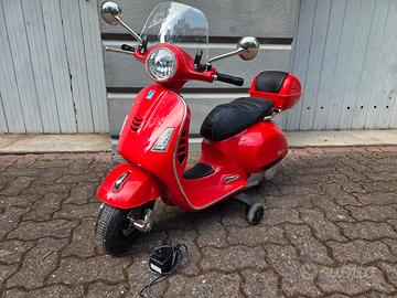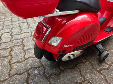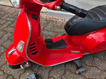 Moto Elettrica per Bambini 12V con Licenza Ufficiale Vespa Piaggio – Modello GTS Super, Luci LED, MP3, Sedile in Pelle, Bauletto – Rosso condizione Buone qualche segno su adesivi e una macchia sulla carrozzeria.