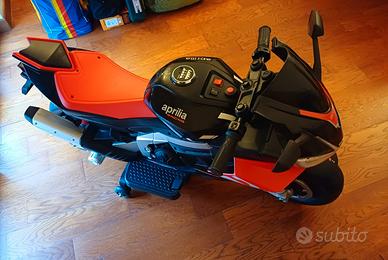 TCARAIWEN Moto elettrica per bambini 24V, moto per bimbi 3-6 anni su licenza Aprilia, con Bluetooth, MP3, luci, rotelle stabilizzatrici e pneumatici all terrain, Nero Design originale su licenza Aprilia - Questa moto elettrica per bambini riprende il look autentico della Aprilia RSV4, con uno stile sportivo e realistico che conquista subito i piccoli appassionati. Un design accattivante che rende il gioco ancora più coinvolgente. Motore 24V potente e brillante - Il motore da 24V offre una spinta decisa e permette di raggiungere una velocità fino a 7,5 mph. In questo modo i bambini possono vivere un’esperienza di guida più emozionante, sempre adatta alla loro fascia d’età. Pneumatici all terrain resistenti - Grazie ai pneumatici all terrain di alta qualità, questa moto elettrica può affrontare diversi tipi di superficie come erba, sabbia e vialetti. Ideale per un utilizzo versatile e per divertirsi sia all’aperto che in ambienti adatti. Luci, musica, Bluetooth e MP3 - Le luci funzionanti, la musica integrata, il Bluetooth e l’MP3 rendono ogni corsa ancora più divertente. L’avvio con un solo pulsante, insieme alla marcia avanti e retromarcia, assicura un utilizzo semplice e pratico per i più piccoli. Rotelle stabilizzatrici per maggiore sicurezza - Le rotelle laterali aiutano a migliorare stabilità ed equilibrio durante la guida. Sono perfette per accompagnare i bambini nelle prime esperienze su una moto elettrica, aumentando sicurezza e fiducia ad ogni utilizzo. Su Amazon in vendita a 240€ Praticamente nuova, utilizzata poche volte e solo in casa. Ritiro di persona, oggetto ingombrante e pesante.