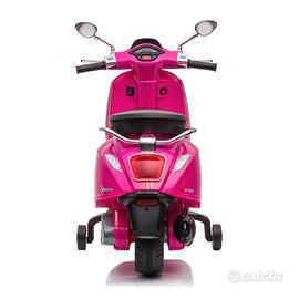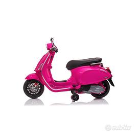 Moto elettrica a 2 ruote per bambini Piaggio Vespa Sprint colore rosa a batteria 12 volt 4.5 Ah, dotata di luci LED e suoni predefiniti.