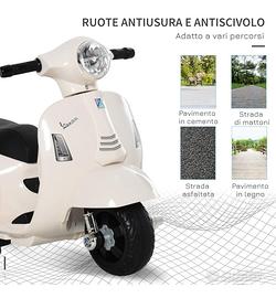 Moto Elettrica per Bambini Vespa Batteria 6V, Fari e Clacson, per Bimbi da 18-36 mesi, Bianco, 66.5x38x52cm Vendo per inutilizzo ed utilizzato 3 volte