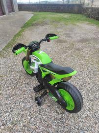 Vendo come da titolo moto elettrica per bambini con rotelle, batteria 6V velocità 2.5km/h, 102 x 53 x 66cm, colore verde. Questa moto per bambini è dotata di 2 rotelline ausiliarie che garantiscono massima stabilità e sicurezza durante la guida. Le ruote larghe offrono un'esperienza di guida confortevole, basta premere l'interruttore per muoversi e avere un effetto realistico.