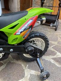 HOMCOM Moto da Cross Elettrica con 2 Rotelline Ausiliarie per Bambini 3-6 anni, Moto Giocattolo 109×52.2×70.5cm Verde