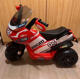 moto elettrica Ducati con luci e suoni. La moto elettrica funziona con batteria ricaricabile da 6V - 4,5Ah (25Wh) Non incluso caricabatterie.