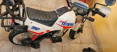 Vendo moto elettrica giocattolo tenerè Peg Perego, degli anni '90. In buone condizioni, con qualche segno di invecchiamento, ovviamente dovuto agli anni. Per il resto funziona tutto alla perfezione, interruttore per selezionare 2 velocità, più pedale del freno e cavalletto. Monta 2 batterie da 6v entrambe nuove con un anno di vita ed apposito caricatore (come in foto). In più sono presenti anche le rotelle originali con viti per il montaggio incluse. Solo consegna a mano.