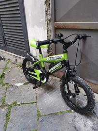 Mountain bike hammer 14'' pollici (4/6 anni) verde e nera con rotelle in perfette condizioni