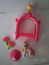 Altalena con little pony con cappello e mazzi di fiori piu simpatico uccellino.