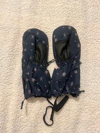Guanti a muffola Ziener blu navy con fiocchi di neve e dettagli rosa. Dotati di membrana Aquashield impermeabile, calda imbottitura e pratica apertura con zip laterale per facilitare la calzata. Nuovi, mai usati.