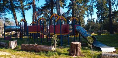 un tubo a Bruco sospeso e due scivoli più arrampicata e scese da pompiere e tunnel con gomme verticali.
